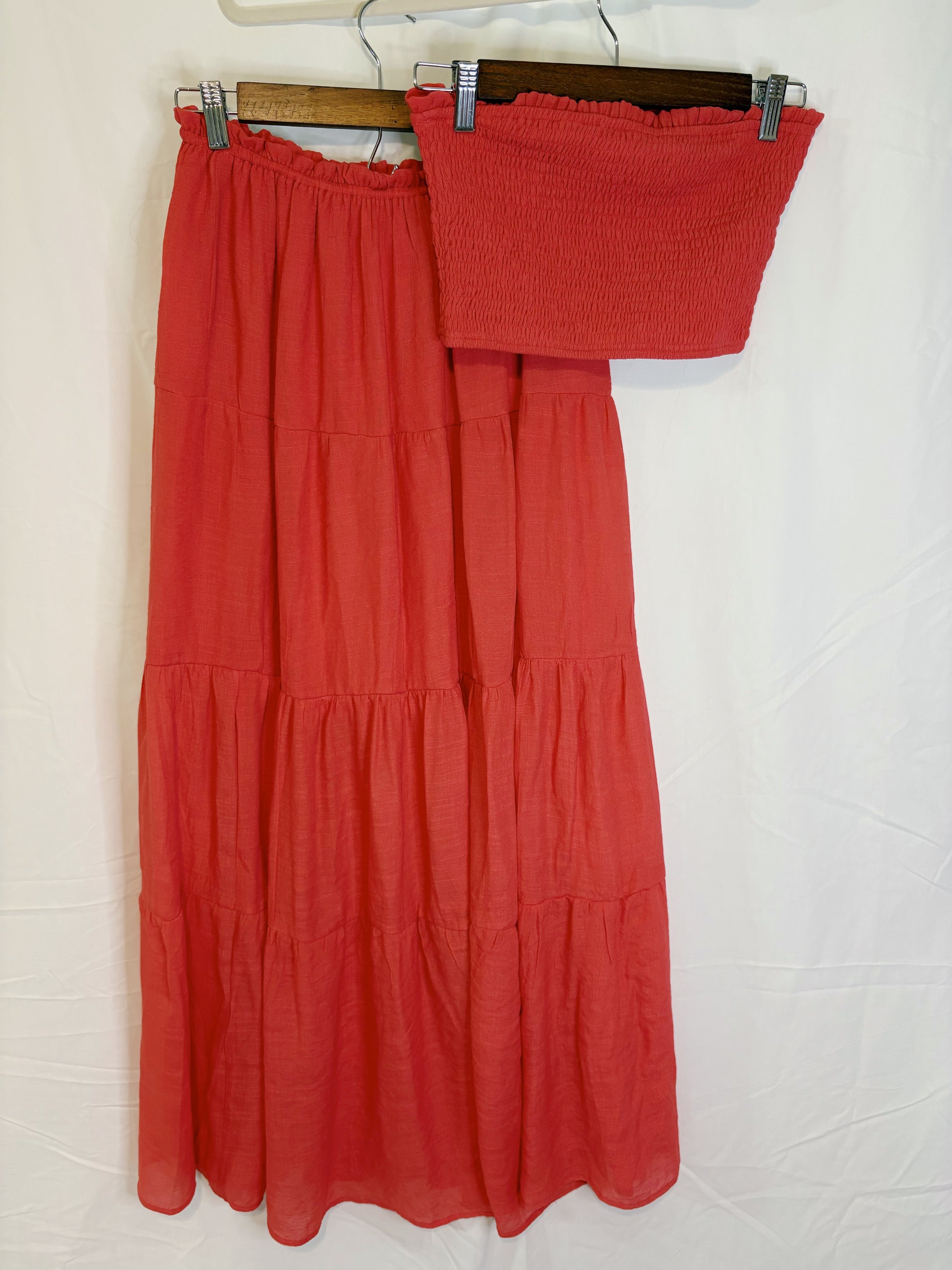 Fresh Summer Looks Call For This Matching Set. The Top Shapes A Strapless Neckline And Features A Smocked Bodice With A Crop Hem. The Skirt Offers A High-Rise Fit With Gathered Detailing And A Flowy, Tiered Maxi Hem. 100% Polyester Model Is 5' 6” Tall, Wearing A Size Small